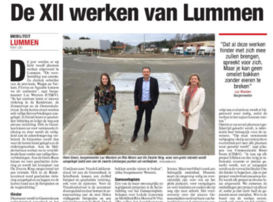 Als schepen van lokale economie vindt Rita Moors het belangrijk dat de Lummenaar inspraak heeft in de herinrichting van zijn Gemeenteplein. Met een proefopstelling wordt het voorontwerp t.e.m. 6 februari uitgetest. Daarna volgt een evaluatie en wordt er bijgestuurd waar nodig, zodat de definitieve werken dit najaar kunnen starten.